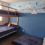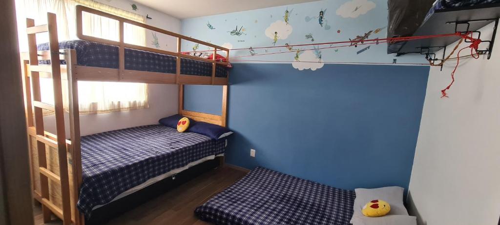 Incluye una habitación matrimonial equipada con una cama doble y un dormitorio con 2 literas y una cama doble grande además de sala de estar equipada con 2 sofás cama y TV.